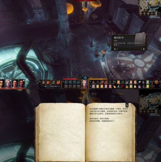 25.中间楼层桌子上破旧的书里记载了剧本。