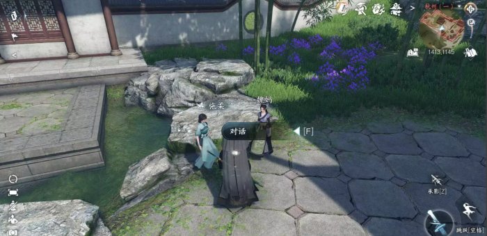 杭州1413.1145处与NPC“施柔”对话并提交“盐津梅子”,获得“采购清单”,杭州1068.1015处向NPC“陈积”提交“采购清单”并对话,杭州1413.1145处与“施柔”对话,杭州1156.1087处对话“慧娘”,杭州1171.1137处对话“陈积”。
