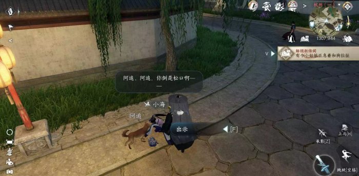 杭州1307.944处与NPC“小海”对话并提交“包子”然后捡起包袱,将包袱提交给冷血师兄并对话。