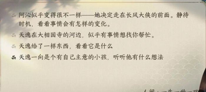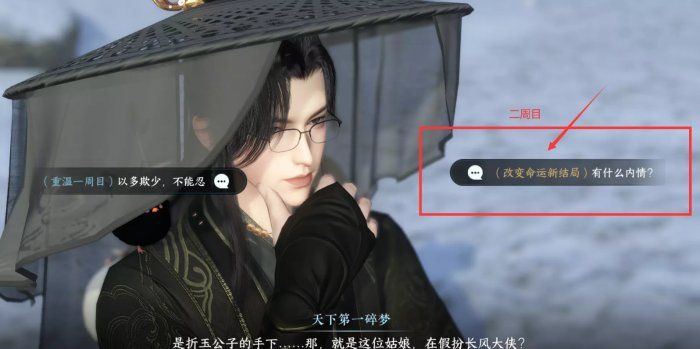 这里要注意,二周目时天逸是找不到匣子的,要触发图示中的内容至少需要三周目及以后(需要二周目结局时完成追命或者曲河星的传闻)。