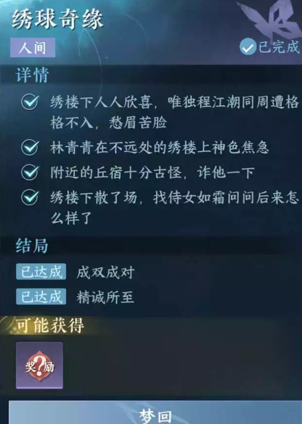 《逆水寒手游》人间任务绣球奇缘任务攻略