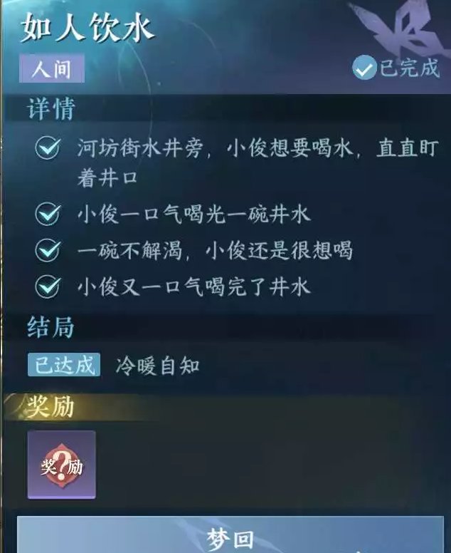 2、拾取井边的“井水”并提交给小俊,第一次提交一个第二次提交两个,之后对话即可完成