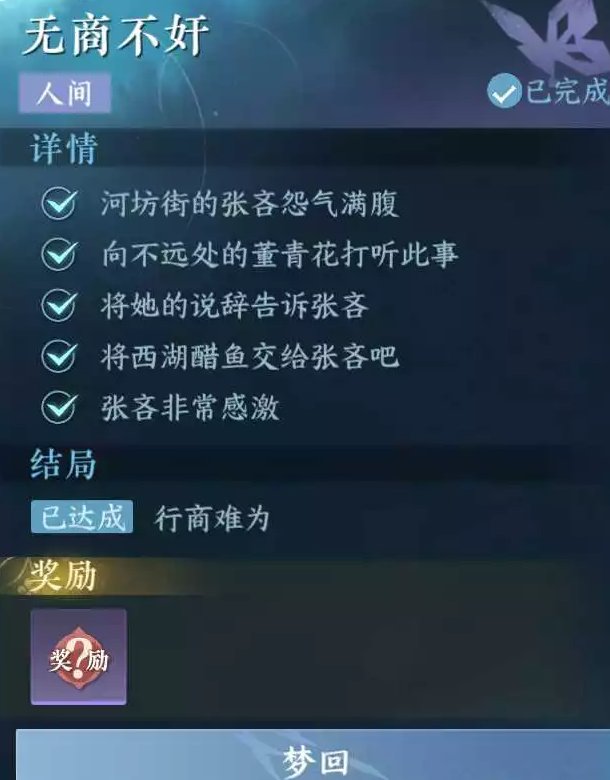 《逆水寒手游》人间任务无商不奸任务攻略