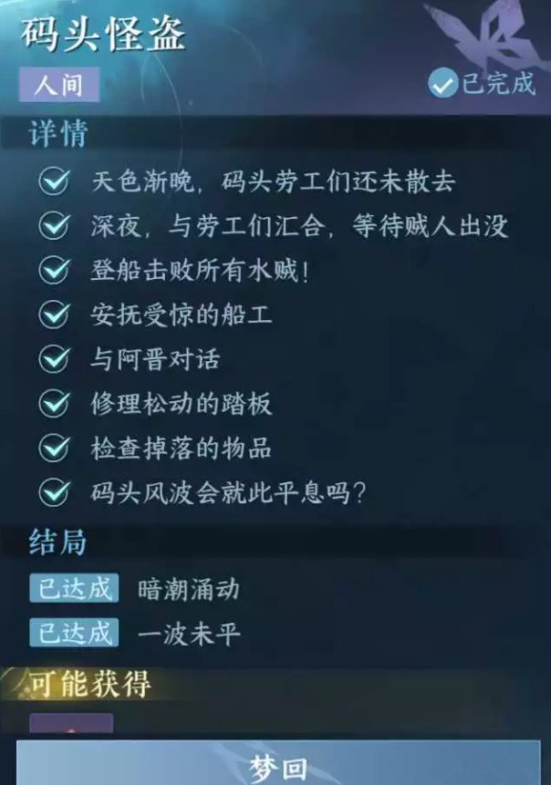 《逆水寒手游》人间任务码头怪盗任务攻略