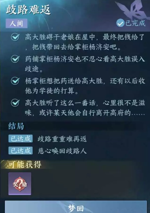 注:本人间任务有2个结局,可在本区域的人间任务列表进行梦回