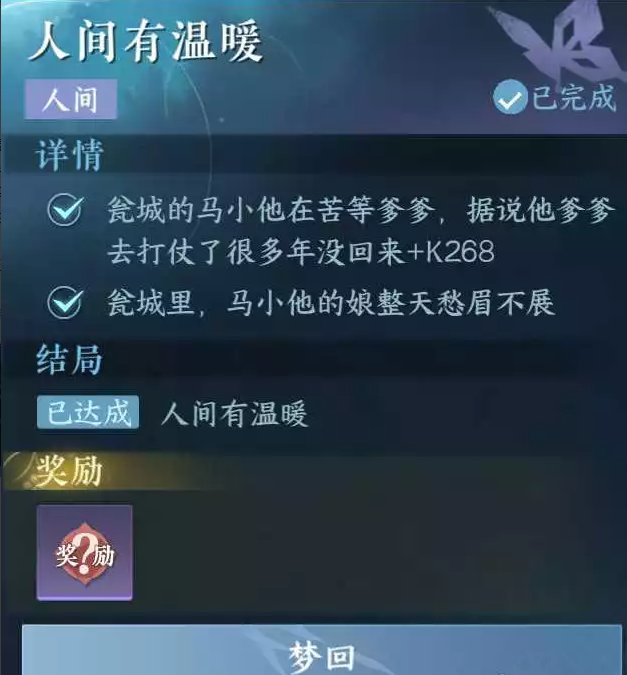 《逆水寒手游》人间任务人间有温暖任务攻略