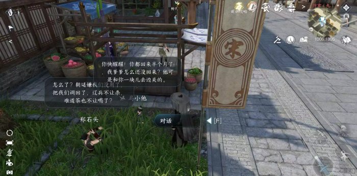 1、到汴京1006.1305处,先与NPC“郑石头”对话,再和“马小他”对话