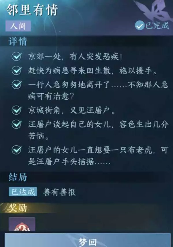1、到汴京1517.1180处与NPC“汪屠户”对话并提交“下品回生散”