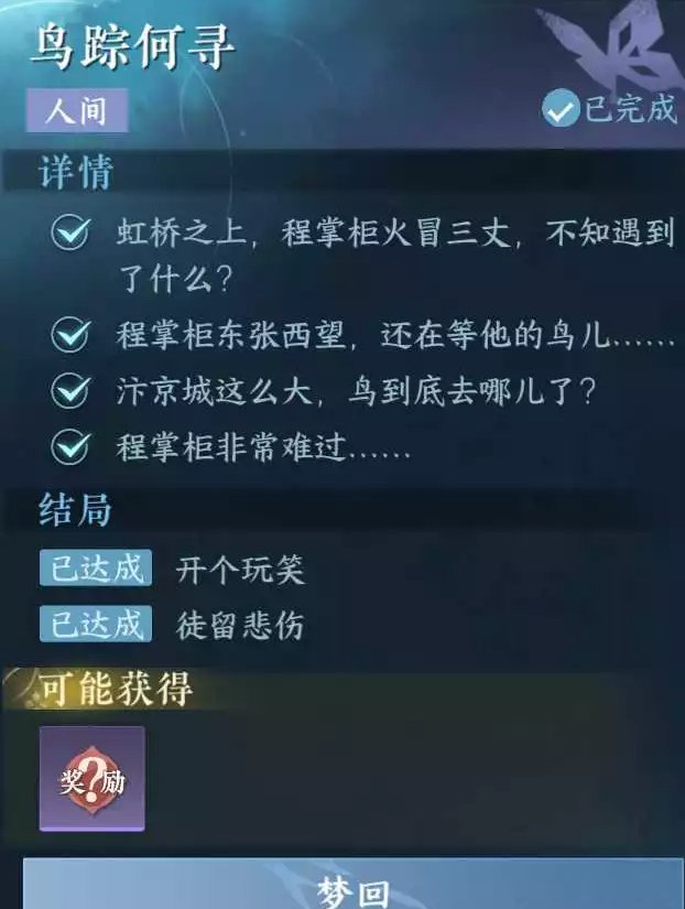 《逆水寒手游》人间任务鸟踪何寻任务攻略