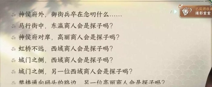 3点剧情点,2点风云令和2个绑玉 获得收藏图鉴「谍影重重」 获得多种方言收藏