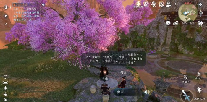 2、到桃溪村1373.1308处与王山对话并提交一坛“桃花雪”