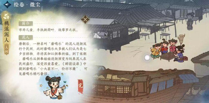 4点剧情点,6点风云令,5个绑玉和6个静息凝丹 解锁绘卷·微尘·桃溪泥人
