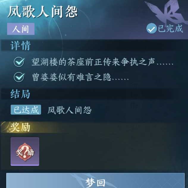 以上就是《逆水寒手游》人间任务凤歌人间怨攻略的全部内容 ,更多逆水寒手游相关攻略点击逆水寒手游专区查看!