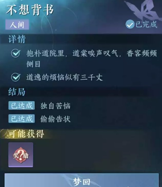 选择“和道逸谈谈”对应结局“偷偷告状”