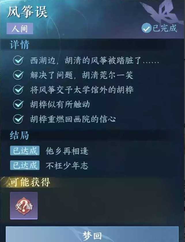 注:本任务需要背包中有“风筝”才能触发,没有的话可以去风筝铺买