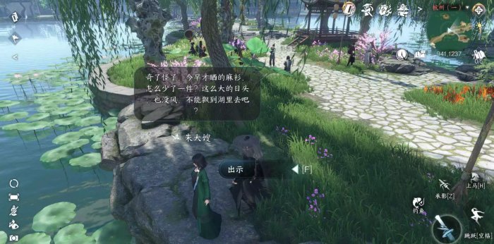 ②到杭州941.1237处向NPC“朱大嫂”提交“麻衫”即可完成任务