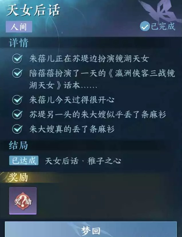 以上就是《逆水寒手游》人间任务天女后话攻略的全部内容 ,更多逆水寒手游相关攻略点击逆水寒手游专区查看!