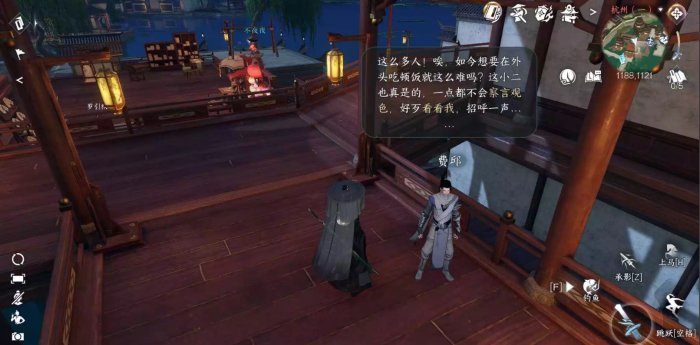 ①到杭州1188.1121处对NPC“费邱”使用动作观察触发任务
