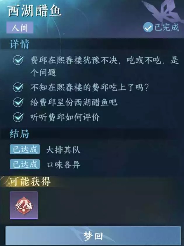 《逆水寒手游》人间任务西湖醋鱼任务攻略