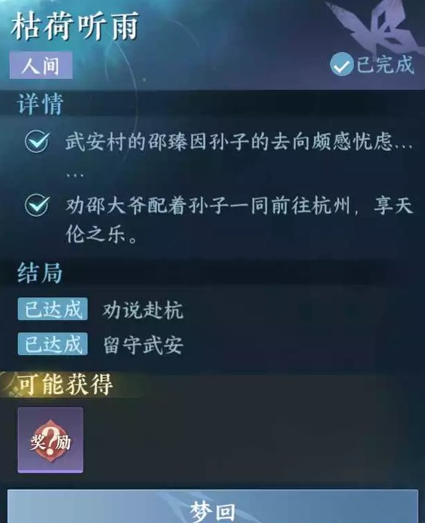 《逆水寒手游》人间任务枯荷听雨任务攻略