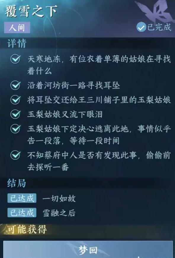 《逆水寒手游》人间任务覆雪之下任务攻略