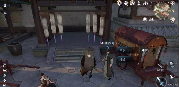 对话选择“鲁家小厮”,提交“皋月洗面药”(可以在杂货铺购买),获得“红绳”,之后到汴京869.798处向“崔知简”提交“红绳”后击败打手并对话