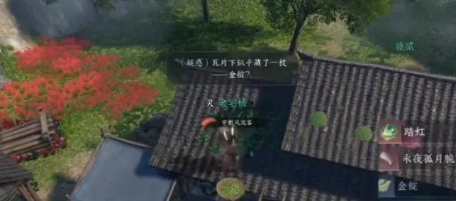 1、我们前往任务触发点,来到一处民房的屋顶上在瓦片中找到我们需要的道具。