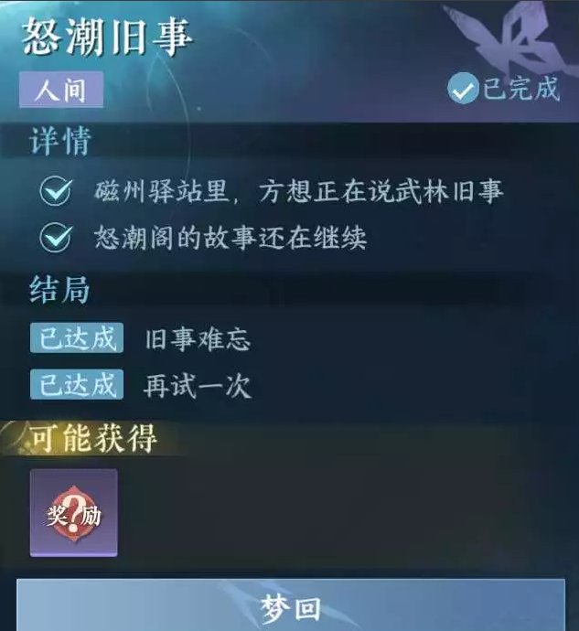 《逆水寒手游》人间任务怒潮旧事任务攻略