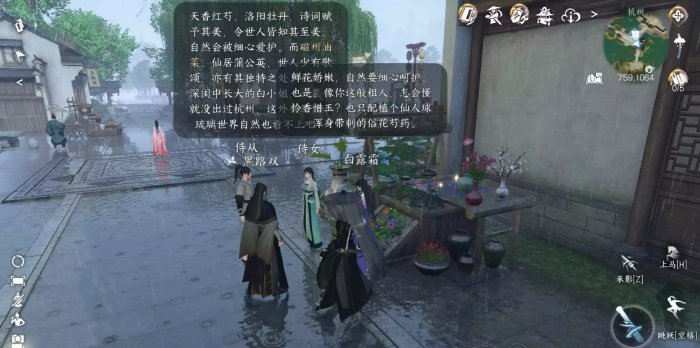 ②到杭州759.1064处向NPC“黑路双”提交“油菜花环”,获得“一品券”