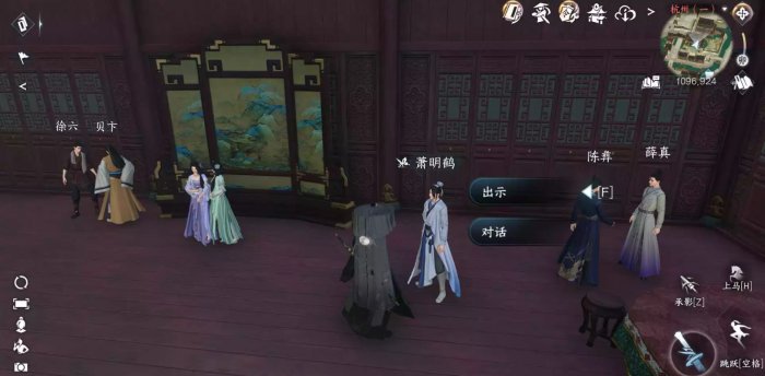 ②到杭州1096.924处向NPC“萧明鹤”提交“纸条”并对话