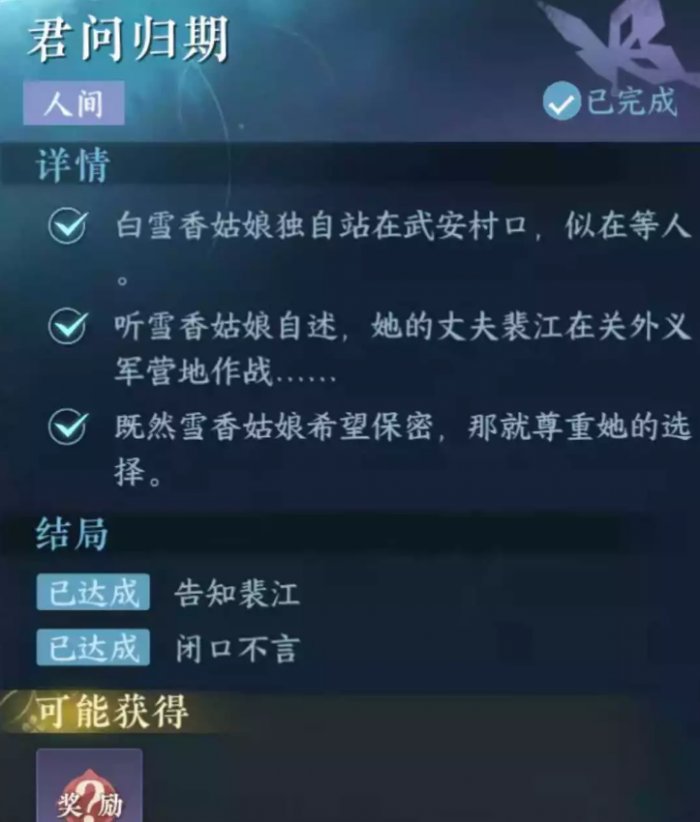 《逆水寒手游》人间任务君问归期任务攻略