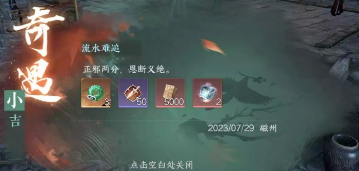 以上就是《逆水寒手游》小吉奇遇流水难追任务攻略的全部内容 ,更多逆水寒手游相关攻略点击逆水寒手游专区查看!