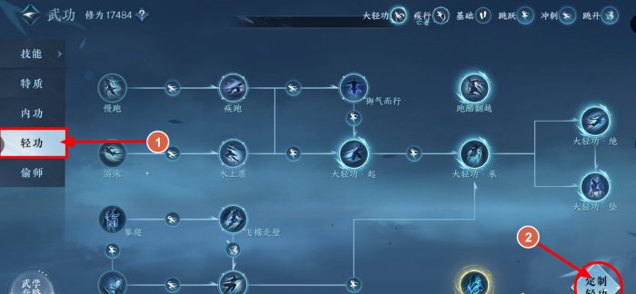 第六步:学习好轻功后,打开武功界面,点击轻功,点击定制轻功。