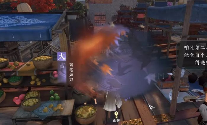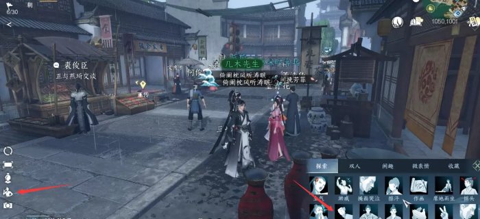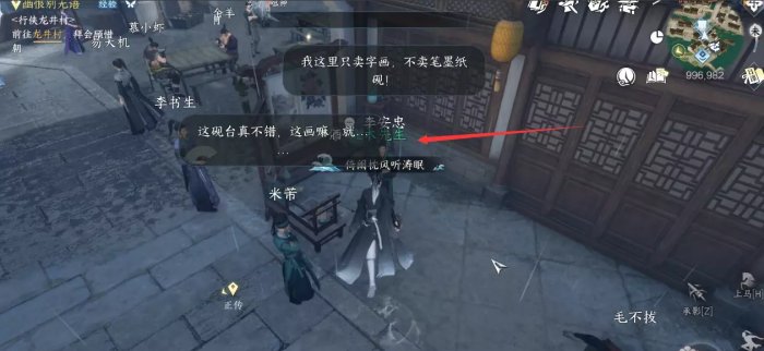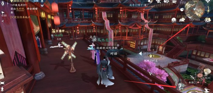 然后在旁边坐标1050,1001处找到董青花,然后我们点击动作里的自信握拳即可触发奇遇:闻剑雨!