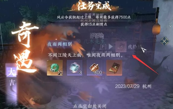 前往杭州坐标1069,916处捡起地上的神秘书册即可触发奇遇!