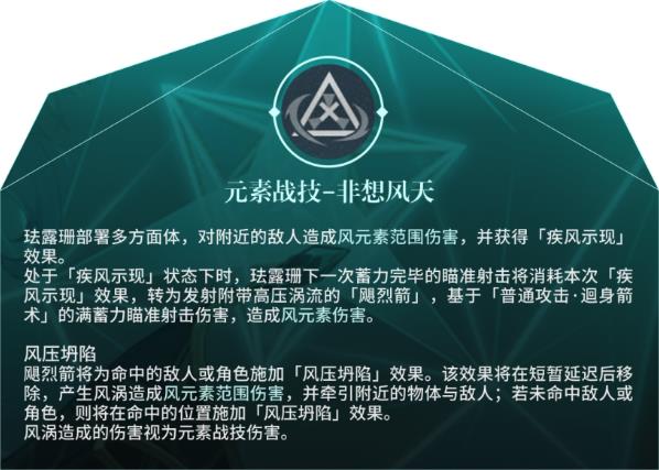 「珐露珊」是风元素弓箭角色,定位为风属性直伤特化辅助,突破能够提高24%攻击力,战斗中主要通过大招为风系主C提供长时间的高额减抗和元素增伤。解锁6命后,还可以进一步提升风元素暴伤,并能在后台产出元素微粒,大幅缓解主C的充能压力。
