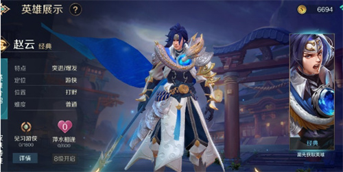 赵云适合打野位,他的主动和被动技能使他具备出色的恢复能力和攻击能力。