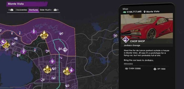 和吉姆交谈过后,这辆车就会在车库附近的街道上出现(在地图上显示为白色图标),很容易找到,随便开一辆回来就行。