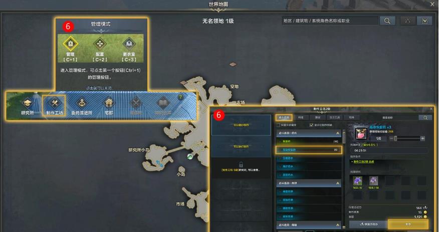 5.F2打开乐谱,演奏宁静的领地之歌回到领地,利用远征队领地的制作工坊制作高级恢复药。