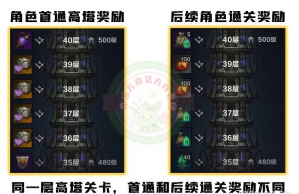 1、每通关一层,则给通关该层的角色发放一次奖励,但账号下首通(第一次通关该层)每层的角色领取的奖励和后续角色二次通关的奖励是不一致的。账号下的第一个角色通过时,会给予一些比较特殊的材料,比如巨人之心,伟大艺术品,人物技能点数,技能符文等。
