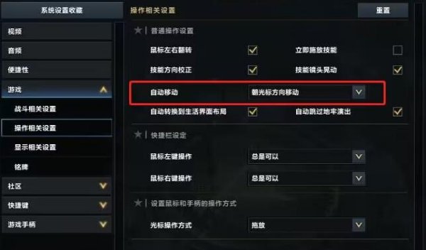 在设置里勾上"以鼠标方向自动行走",就能达到和按住鼠标(即自动寻路)一样的效果。
