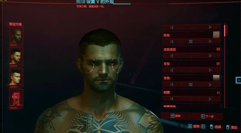 【肤色2号】【皮肤类型4号】【发型32号】【发色7号】【眼睛21号】【眼睛颜色9号】【眉毛1号】【眉毛颜色4号】【鼻子1号】【嘴巴10号】【下巴4号】【耳朵12号】【没胡子】【义体1号】【面部纹身4号】