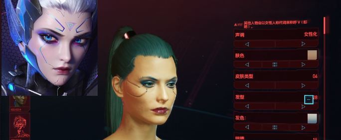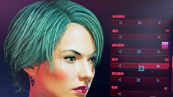 捏脸数据:皮肤颜色:2、皮肤类型:04、发型:12、发色:墨绿色(第二排最后一个)、眼睛:12、眼睛颜色:绿色、眉毛:07、眉毛颜色:蓝色、鼻子:14、嘴巴:06、下巴:10、耳朵:10、义体:06、面部伤疤:关、面部纹身:关、穿环:关、牙齿:03、眼妆:02、眼妆颜色:小麦色(第一排最后一个)、唇妆:05、面妆:关、粉刺:关