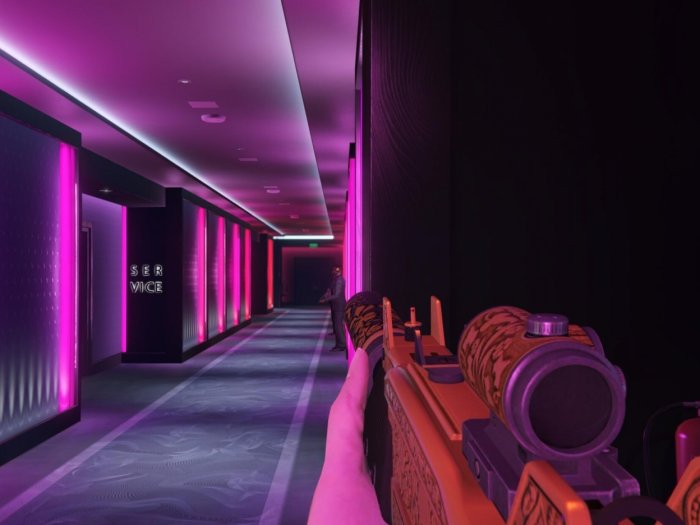 进入大厅之后,找到门口有两名保安把守的地方,用消音武器悄无声息的解决两名保安,否则进入之后敌人会直接打你,让找密码变得困难了许多。