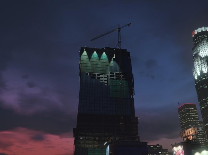 首先前往标记点附近,可以看到有两个黄点,一个上一个下,我们乘坐飞行载具前往楼顶(没有的话可以提前注册保镖事务所用秃鹫直升机),一定要从远处飞上去,离得太近的话底下的敌人是会发现的。