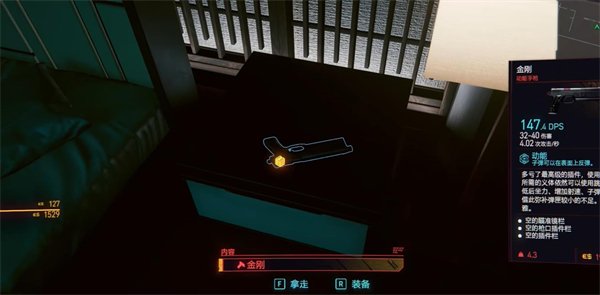 4、获取的方法也是在偷货任务当中,玩家可以在荒坂赖宣的房间床头柜上找到这把武器,获取难度可以说是等同于没有。