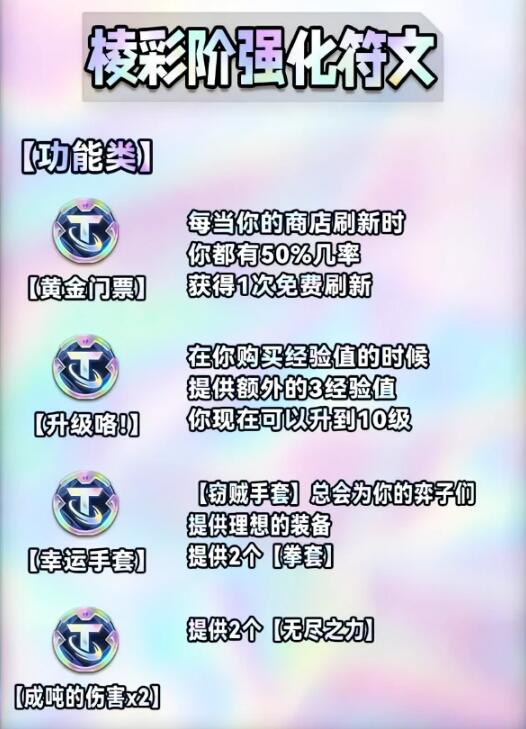 商店刷新是免费的直到这个回合结束为止,羁绊和其它强化不会受益于这些免费刷新提供3金币。