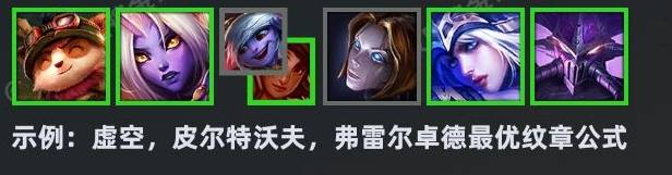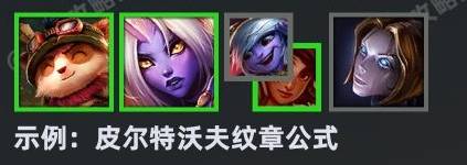 比如:皮尔特沃夫纹章的公式可以选择提莫、索拉卡、小炮/岩雀、发条。