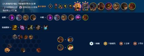 4-1升7人口,补出泽丽开4枪。鳄鱼换猪妹。5-1升8人口,补出厄加特开4祖安,塞纳换小炮,塞恩换猪妹。9人口后大头换蔚,再补出猪妹即可。