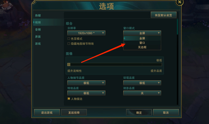 3,接着在右边的窗口模式将全屏调整为窗口或者无边框就可以退出全屏模式了。